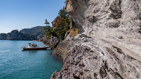 수만 년의 세월이 조각한 기암괴석과 붉은 절벽의 장관을 유람선에서 편안하게 감상하세요.